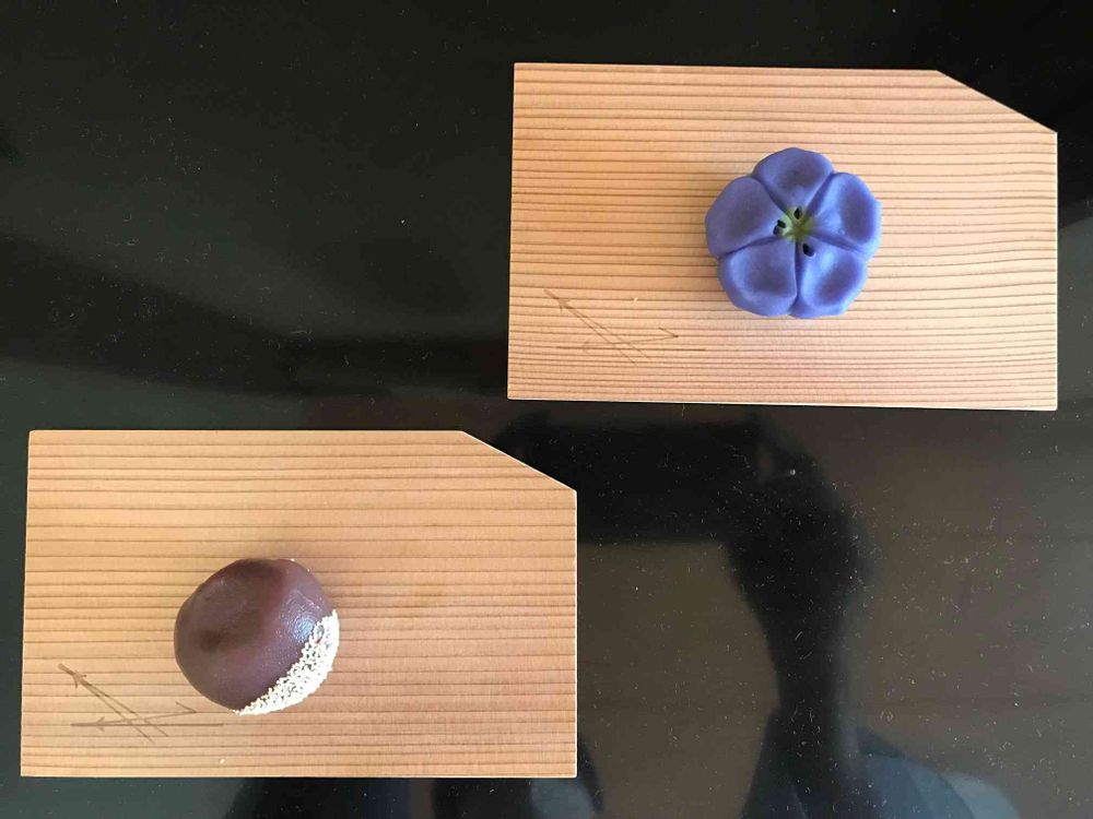 栗と桔梗ですね。美味しそう。お抹茶がいただきたいです。