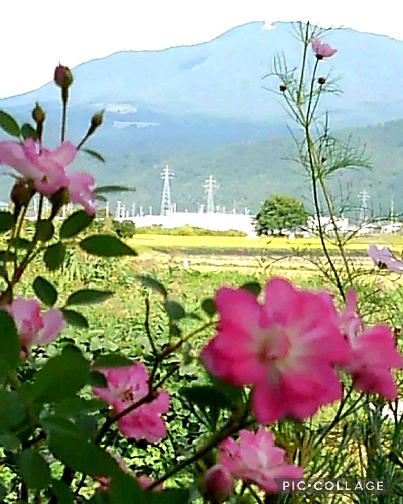 花の向こうに 遠くの山の風景 ナイスアングル✌️☺️