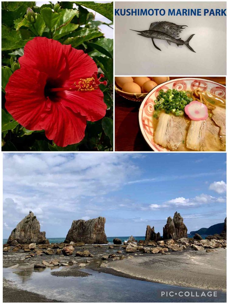 橋杭岩と本州最南端のハイビスカス