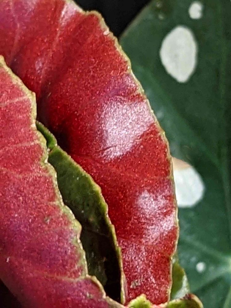 木立ベゴニアの左右非対称な葉と、可愛い水玉柄、そして葉裏のビビットな赤、素敵すぎます😍😍😍😍