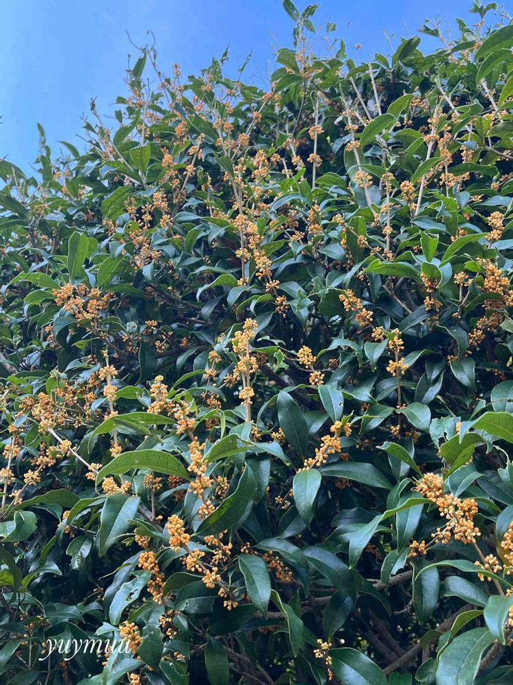 昨日、会社帰りに、公園の金木犀がさいていました。🤩