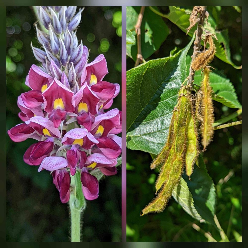 今は道端や林縁に覆いかぶさるように繁茂していて、萎びた鞘がぶら下がってるね😵