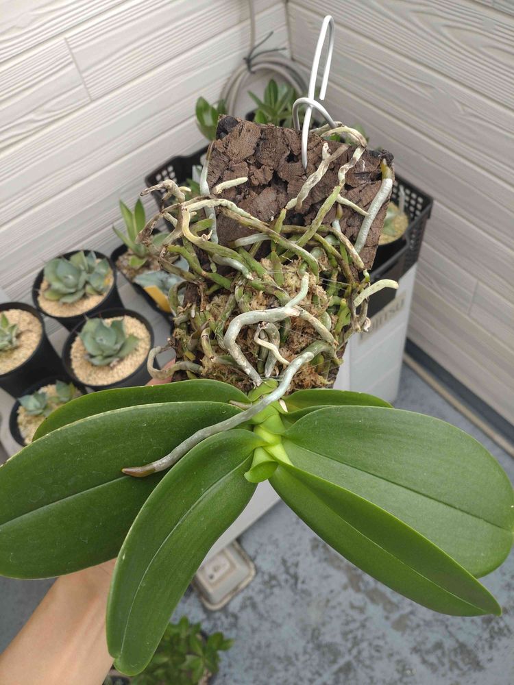 炭化コルクに板付してベランダで管理してるんだけど新しい根っこがめっちゃニョキニョキしてる(ノ゚0゚)ノ~