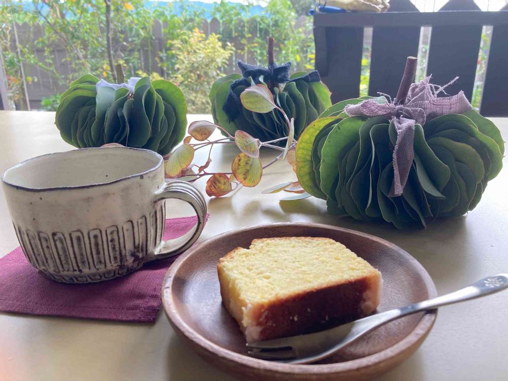 ポポラスのパンプキンもいいアイディアですよね🥰ケーキにユーカリにオシャレなカップ、ナチュラル感がたまらんです〜😍😍😍