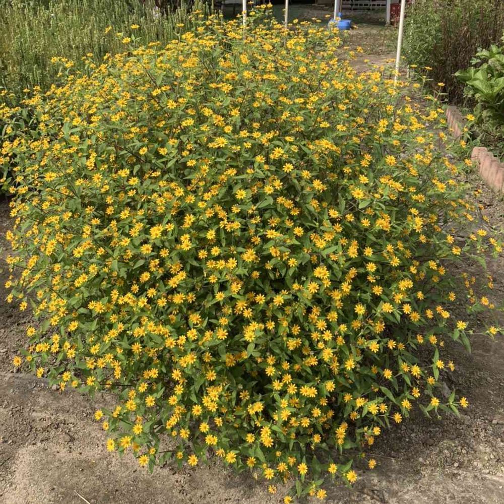 7/26にupした時は円形花壇に収まるくらいの大きさでしたが、今日友人が送ってくれたのは花壇が見えないくらい巨大化したメランポジウムすご(๑°ㅁ°๑)‼
