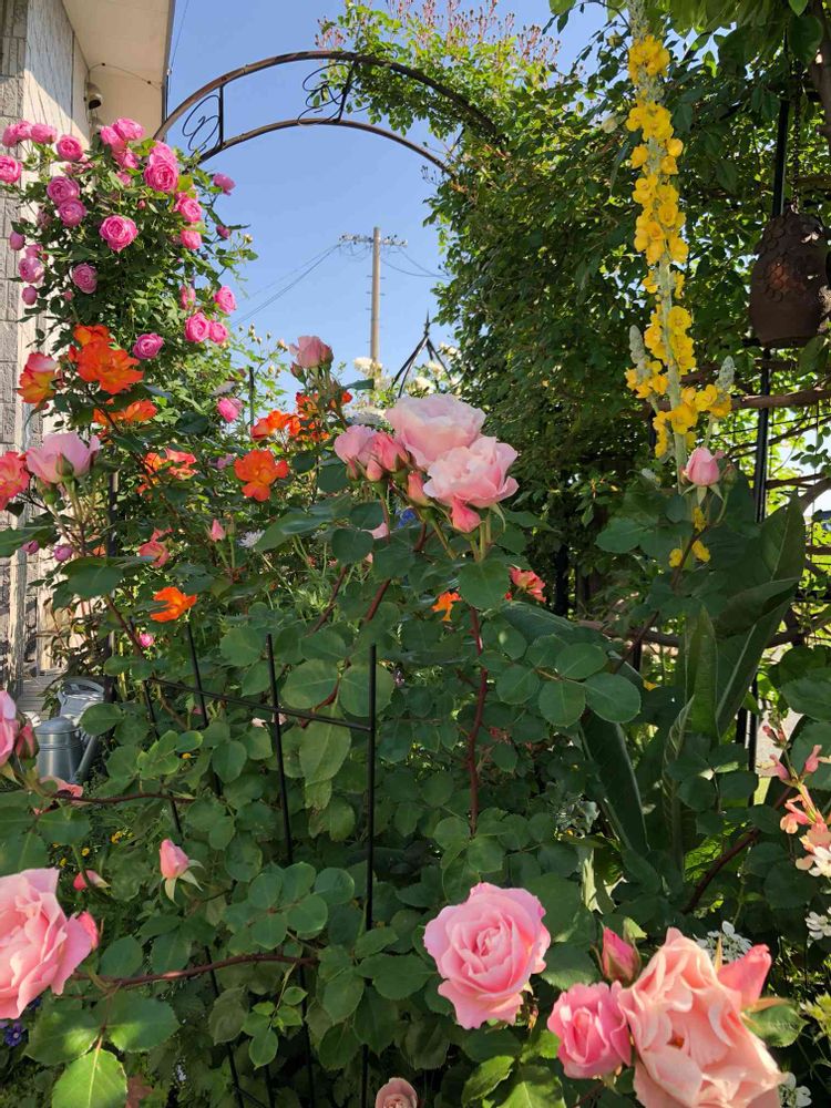 小さい庭で薔薇や宿根草を育ててます。 猫たちもたまに庭パトロール🐈しています。