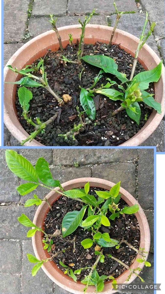 オオスカシバの幼虫がハムハムして、ちょっとまた新葉が出てきたよ🤗