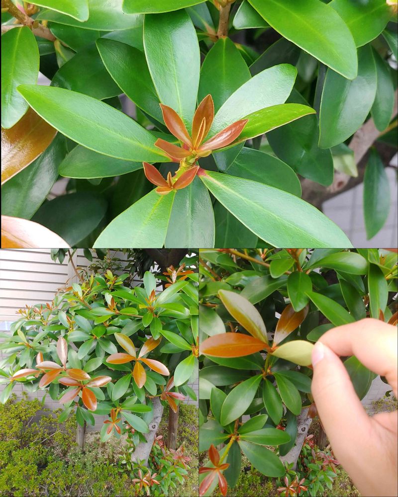 緑の葉っぱから紅い葉っぱが生えて面白い(裏は黄色かったです)