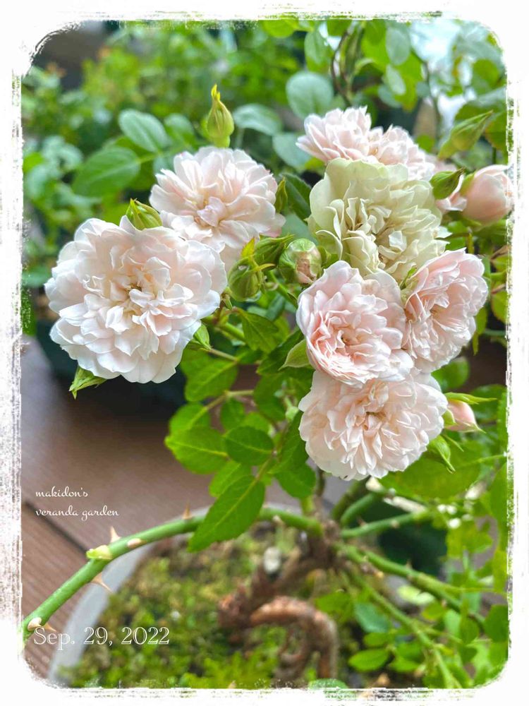 ミニバラ盆栽のグリーンアイスが、どんどん咲いてます➰ちょっと待って〜💦💦