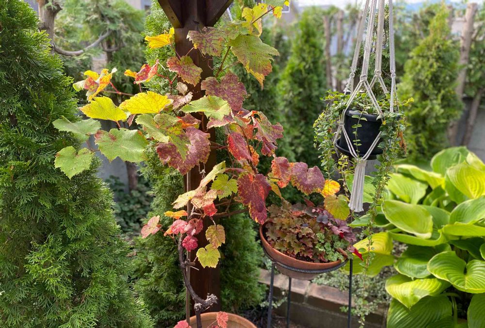 鉢植えのカベルネソービニヨンと山葡萄の掛け合わせた葡萄🍇の葉が紅葉してきました🍁