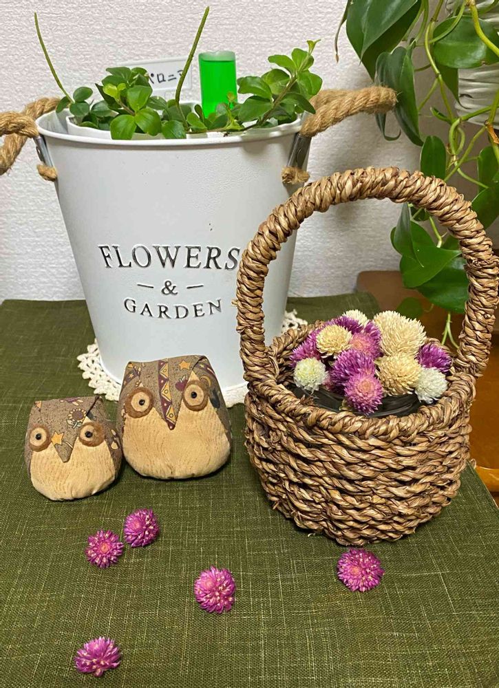 千日紅とフクロウさんの素敵な一枚ですね💖🦉✧︎*。