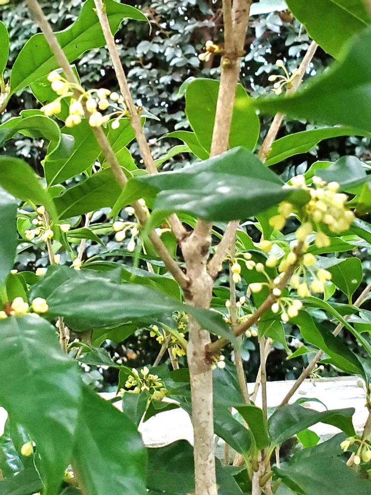 金木犀より香りが爽やか~🎵思って昨年お迎えした銀木犀 畑ガーデンに行ったら爽やかな香り~🎵😍🎵 咲いてくれました😄✌️