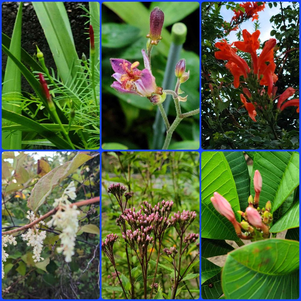 左上からルコウソウ、ホトトギス、ヒメノウゼンカズラ、ブルメリア、フジバカマ、イタドリ