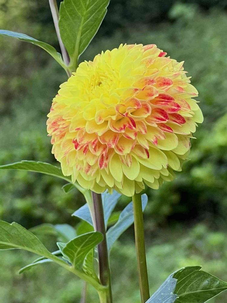 レモンの様なピンクの様な、一部には真っ赤なお色も入っていて、とても華やかなダリア🌼