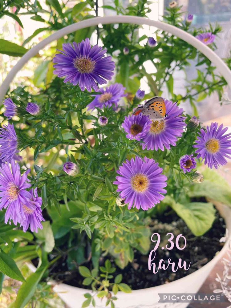 薄紫のアスターちゃんと🦋のコラボにほんの~りしました☺️💓🤗