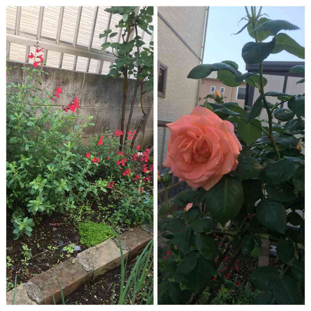 我が家の放置気味花壇にもバラとチェリーセージが咲いていました✨