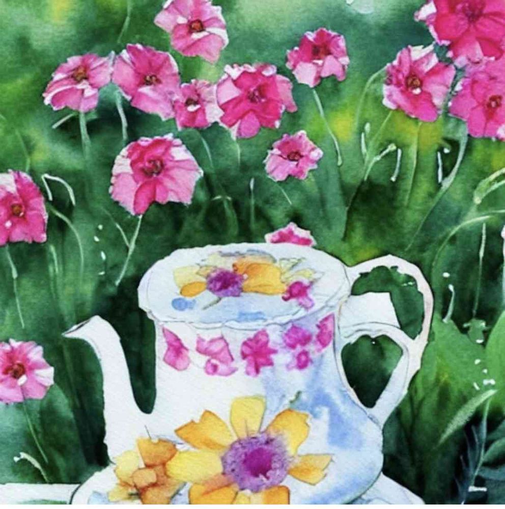 [8K,お花畑、お茶の時間、お姫様、晴れ、幻想的,水彩画]