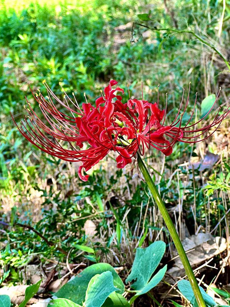 今が盛りのヒガンバナ、1人寂しく咲いていました。