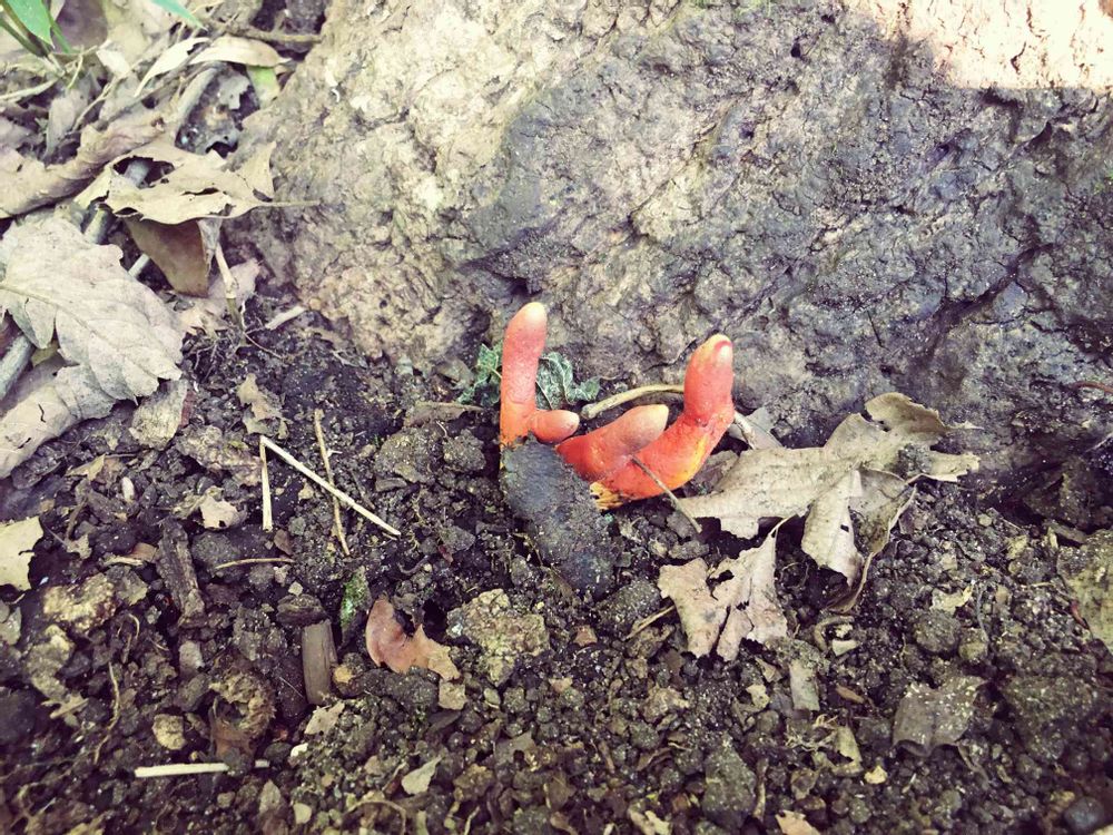 確かに指に見える!見たことなかったんですが、ネットで、このきのこを見かけたら危険!注意!最近、公園などにも生えてると書かれてて。確かに子供とか触りそうで危ないですね。猛毒で触るのもNGだったと思います😳
