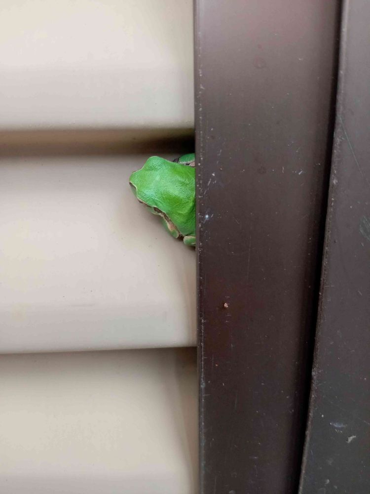 今夜は雨戸の隙間に挟まる中国出身の🐸ちゃん?