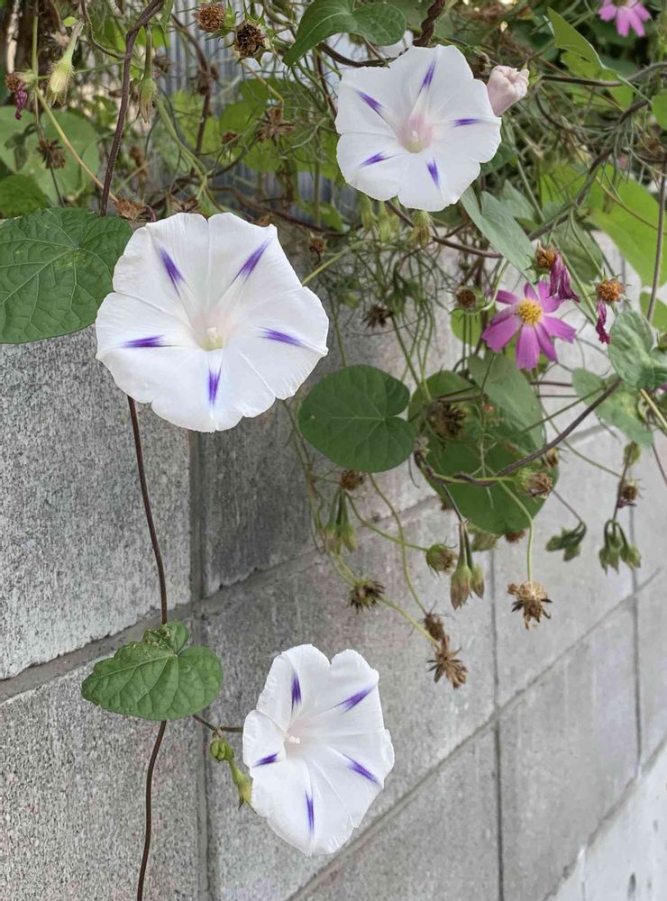 白色の朝顔(アサガオ)の花言葉は「あふれる喜び」「固い絆」。