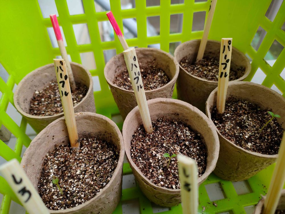 忙しくて専用土を用意できず、バーミキュライトのみですが、発芽してくれてます🥺