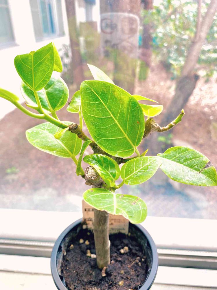 ほとんど同じ時期にお迎えしてるのですね💕私はD2だったですが、D2はフィカスの種類がいろいろ置いてあってみていて楽しいです🥰この子はだいぶ前から置いてあったみたいですが、埋もれていて見つけられませんでした💦埋もれていたので葉があまり綺麗じゃないけど、新芽もたくさんあるので期待します💓