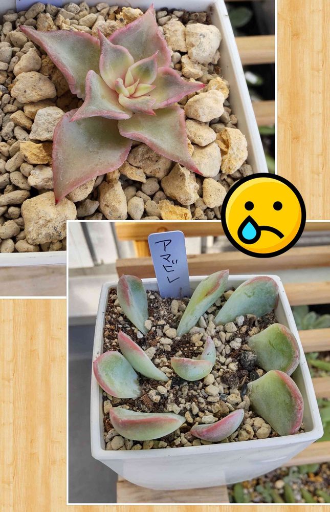 マディバ下葉からどんどんジュレて顔色もどんどんおかしくなってきたのでチョンパ✂️その作業中ふとアマビレの方を見たらなんとパッカーンとなってて触れたら一瞬でバラバラになってしまいました😭