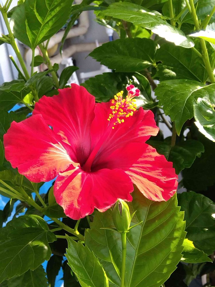バルコニー/ベランダ,今日も、暑くなりそう,赤いハイビスカス!の投稿画像