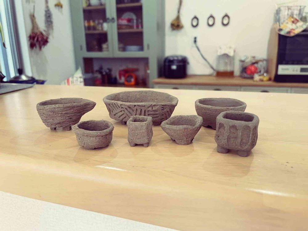 最近、山野草を始めました。旦那は盆栽、私は下草を学び始めました。 自宅で陶芸しています、豆鉢など作っています。の