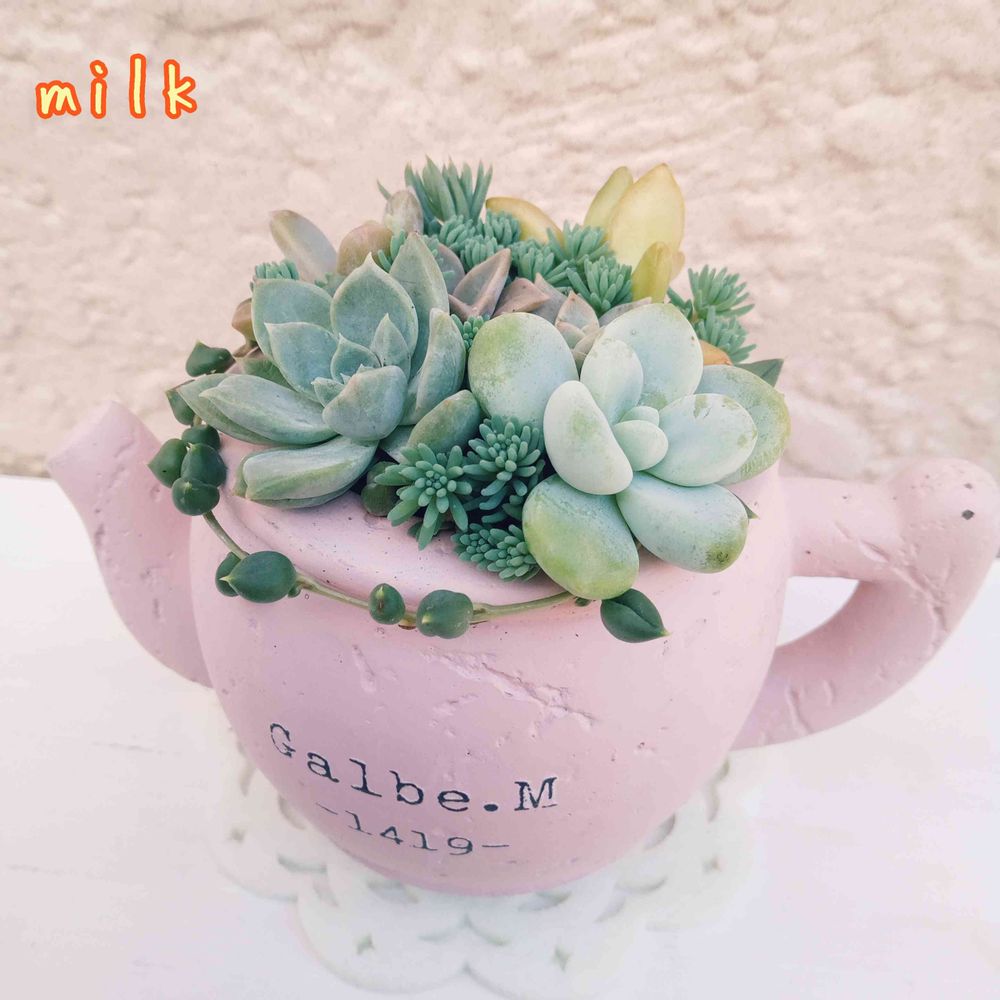 ピンクの鉢にプリプリ多肉はmilkさんの雰囲気なんでしょうね😆