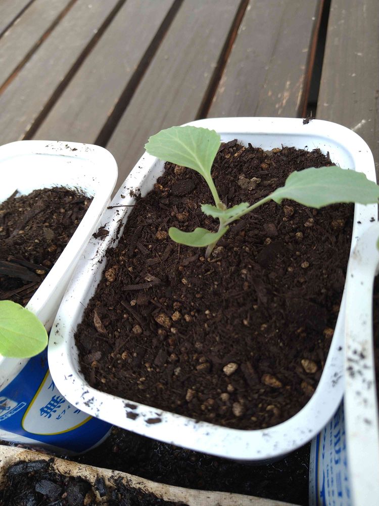 ヨーグルトのカップでキャベツが大きくなるか実験中です。