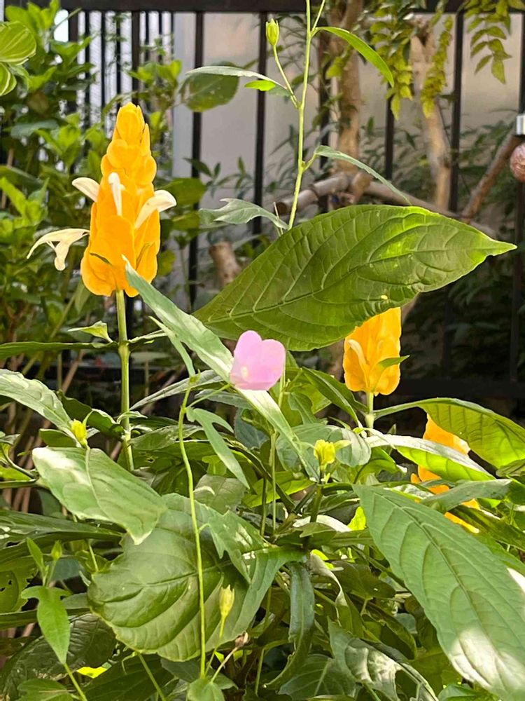 2人の男性の間を揺れ動くブリジットみたいな原種ハイビスカス🌺ロバツスです
