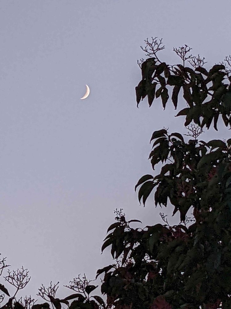 散歩の帰り道~見上げると細い月が‥🌒!!