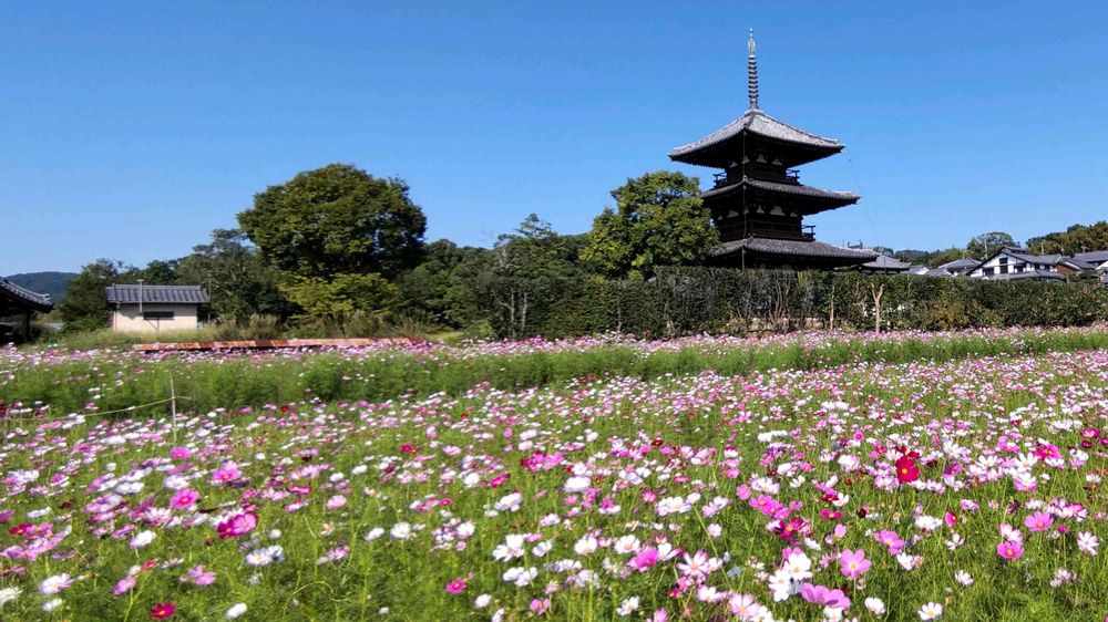 法起寺とコスモス🎵