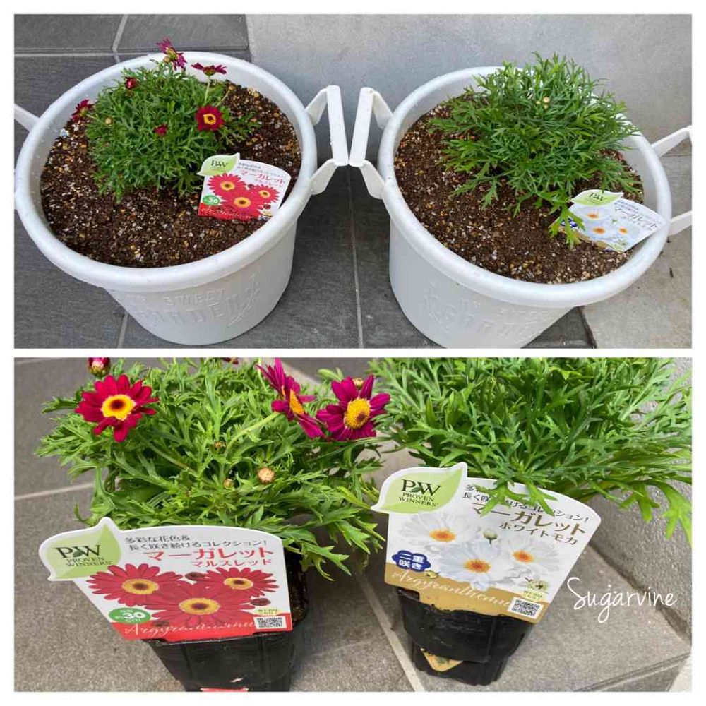 取手がついてて良いよね!アナベルジャンボをこれに植えてて持ち運びやすかったから、マーガレット用にも買っちゃった😆