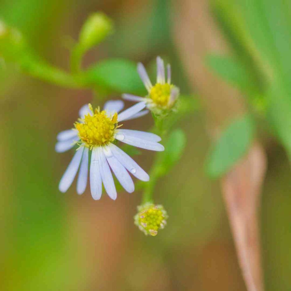 イナカギクっぽいですが、わかりません。白いキク科は多くてなんだか難しいですよね。シロヨメナ?シラヤマギク?昨夜まで雨が降っていたので(台風)少し水玉も残っていました。
