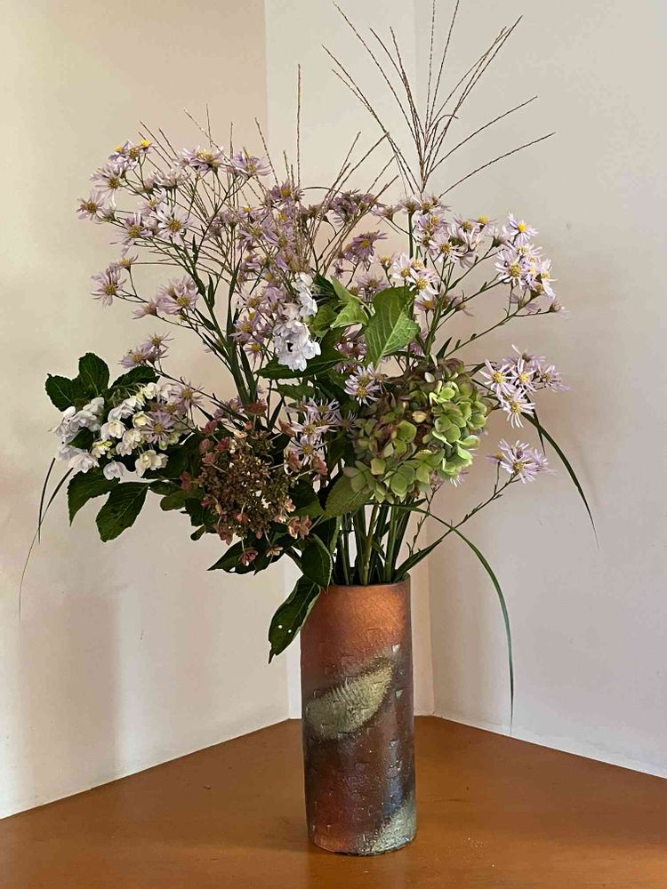 自作の花器に妻が花を生けました🤗