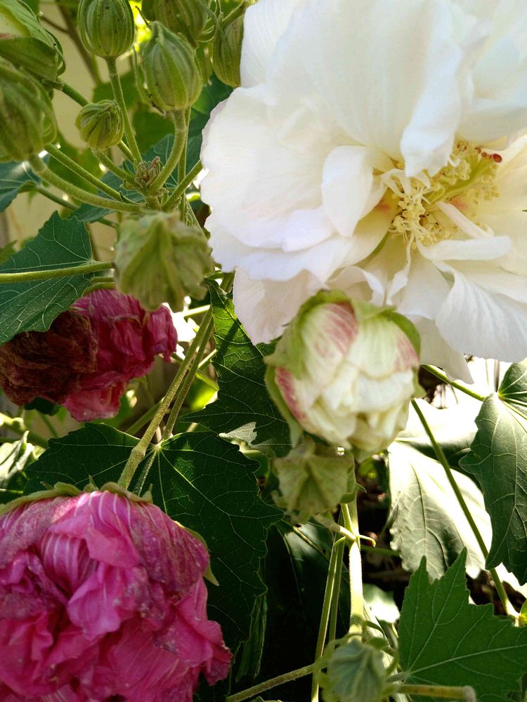 酔芙蓉は時間経過と共に白〜赤へ、まるで酔っ払い?の如