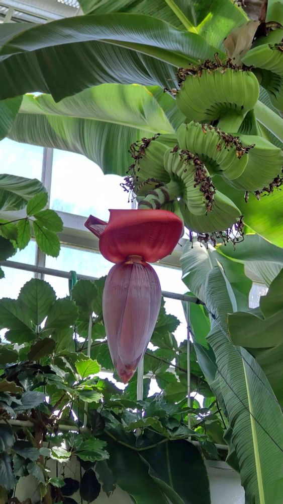 🍄展と苔の世界を見に広島市植物公園へ行きました😊せっかくなので大温室に行きバナナの花に出会いました😉