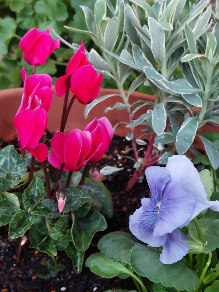 カマンベールさんのパンジー,ガーデンシクラメン,ユーフォルビア シルバースワンの投稿画像