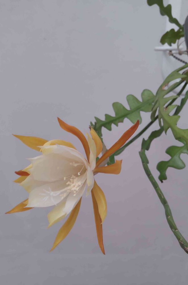 フィッシュボーンカクタス、昨日旦那が蕾を見つけ観察したところ夕方から開花!!夜には凄い香りを撒き散らかし臭いと言われるほど🤣