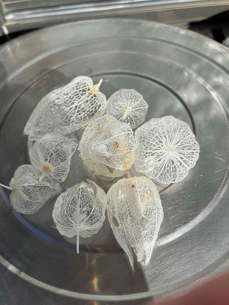 おはようございます。晴れ、21.6℃、8:50爽やか・ちょうどいい。明日からお出掛けなので透かしホオヅキを完成させました。今年2回目、ホオヅキの出来が悪く実が付いてませんでした。100均で透明ケースを購入したので玄関に飾っておきます。🥰😻😍🤗😊😸