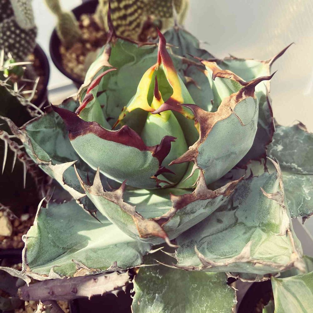 2017年より多肉植物にハマり中。 ヘンテコな形大好き。 普及種からレアなものまで心に刺さった植物を収集中。 アガベは丸っこいボール型や低重心タイプが好き 多肉植物に癒される日々。