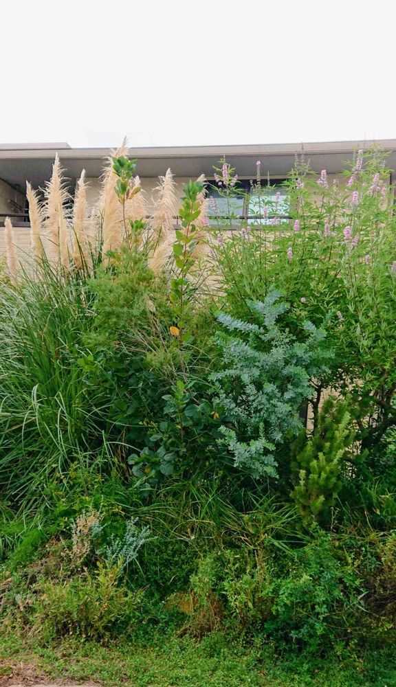 パンパスグラスと西洋人参木はどこまで大きくなるんでしょうね😆このお宅の前は道路だから陽当たりが良く、どこかで剪定も必要でしょうね!