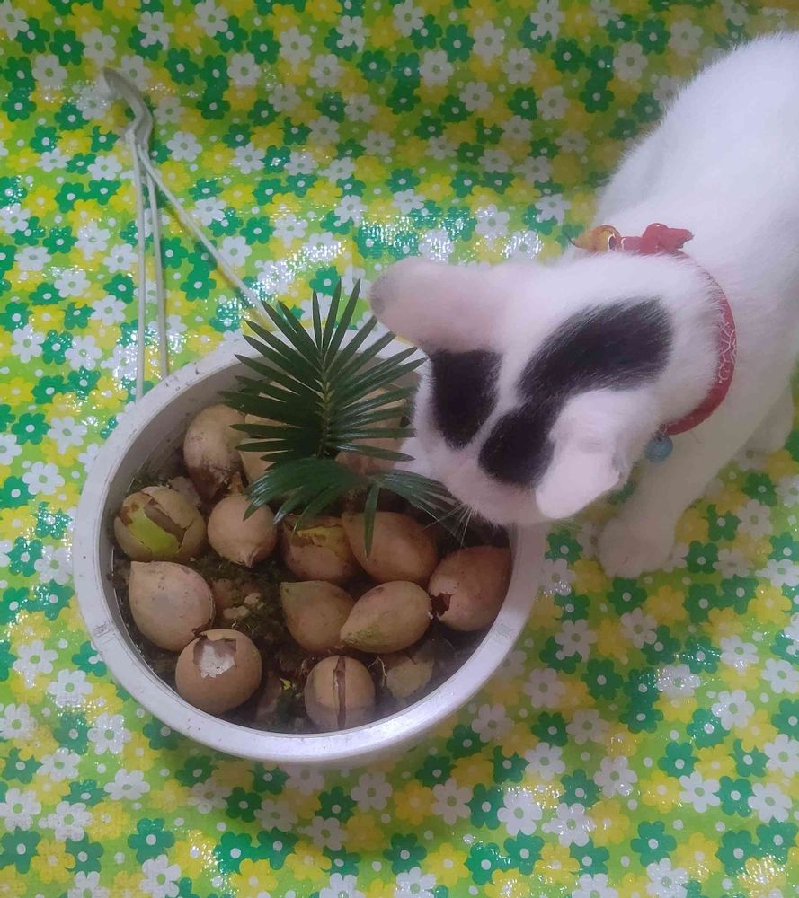 鉢の中全てがソテツの実。中はどうなって要ることやら...😱