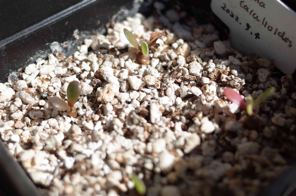 5月に植えて、窓辺で腰水管理をしていたカカリオイデス。窓辺の温度が高くなるせいか、ほぼ休眠状態。少し起き始めたかな~