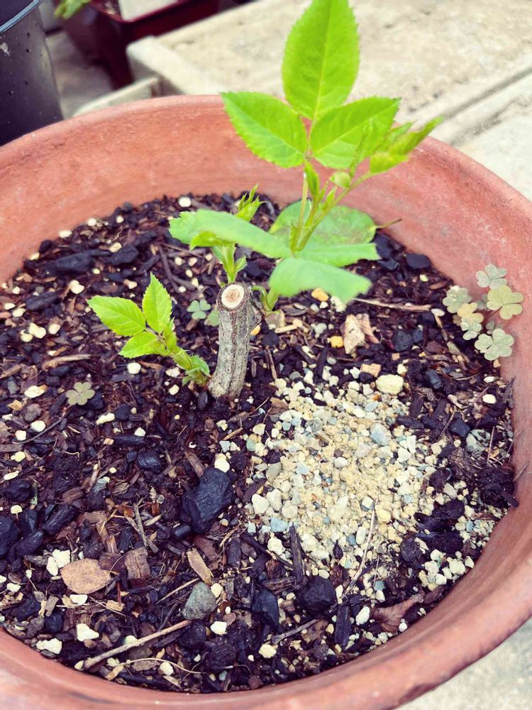 昔からあるバラが古株で葉っぱもあんまりなかったから思い切って剪定したらちゃんと葉っぱ生えてきた。