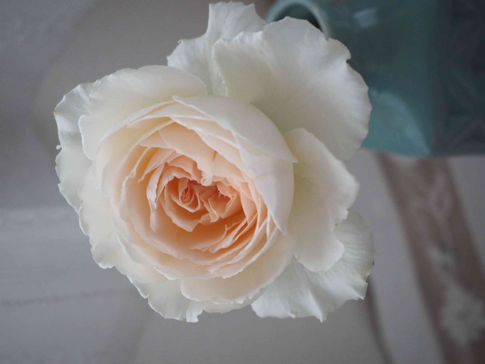 台風前に開きかけを切り花にしたメルヘンツァウバー。