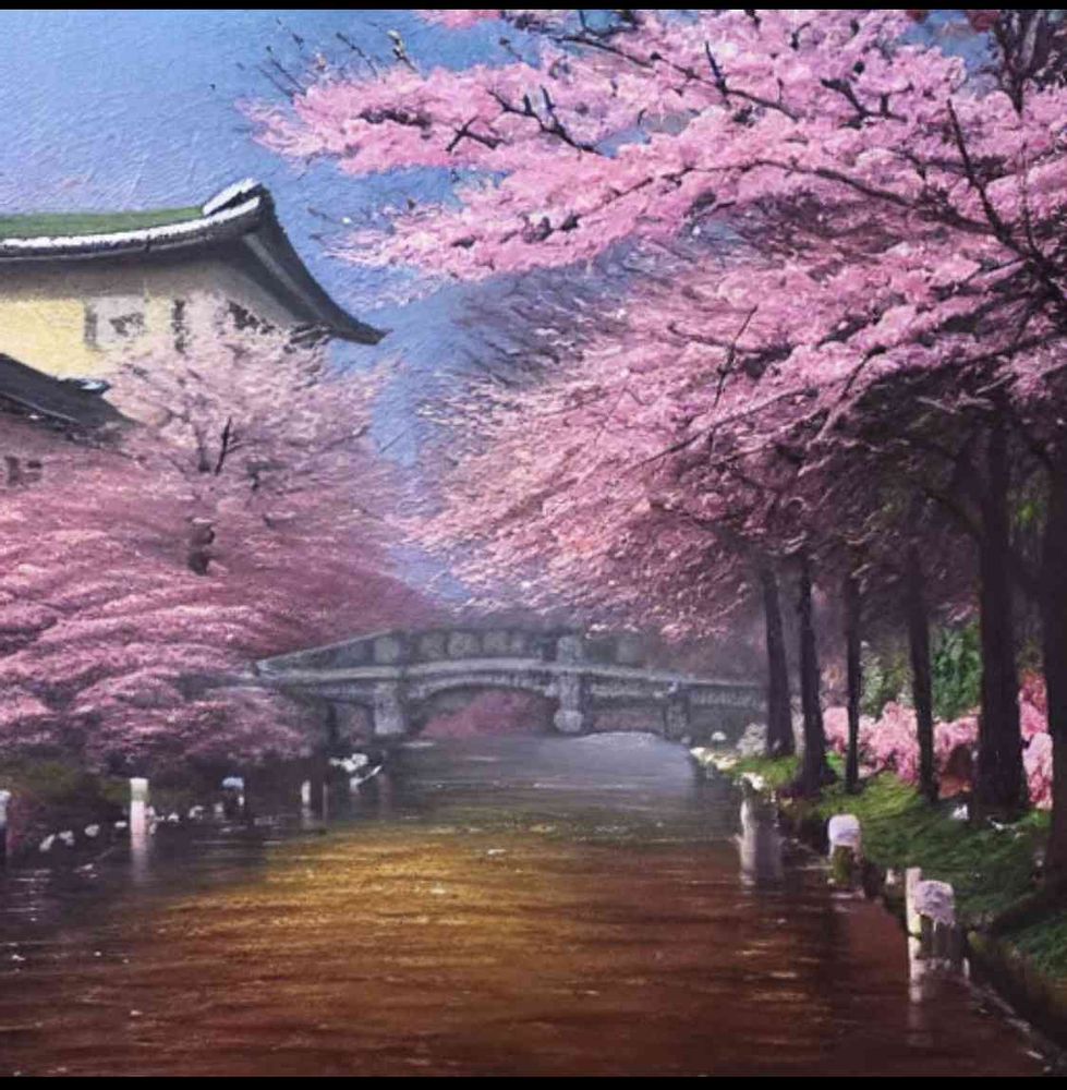 [8K,桜,日本の田舎 , リアル,写実的,油絵]